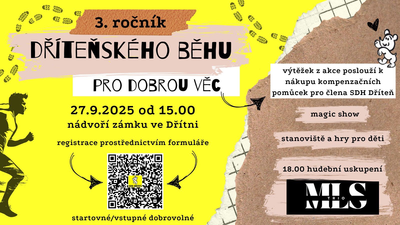 sobota 27.9. Dříteň, Dříteňský běh pro dobrou věc, 5 km běh nebo dvoučlenná štafeta na 5 km, plakát v příloze.