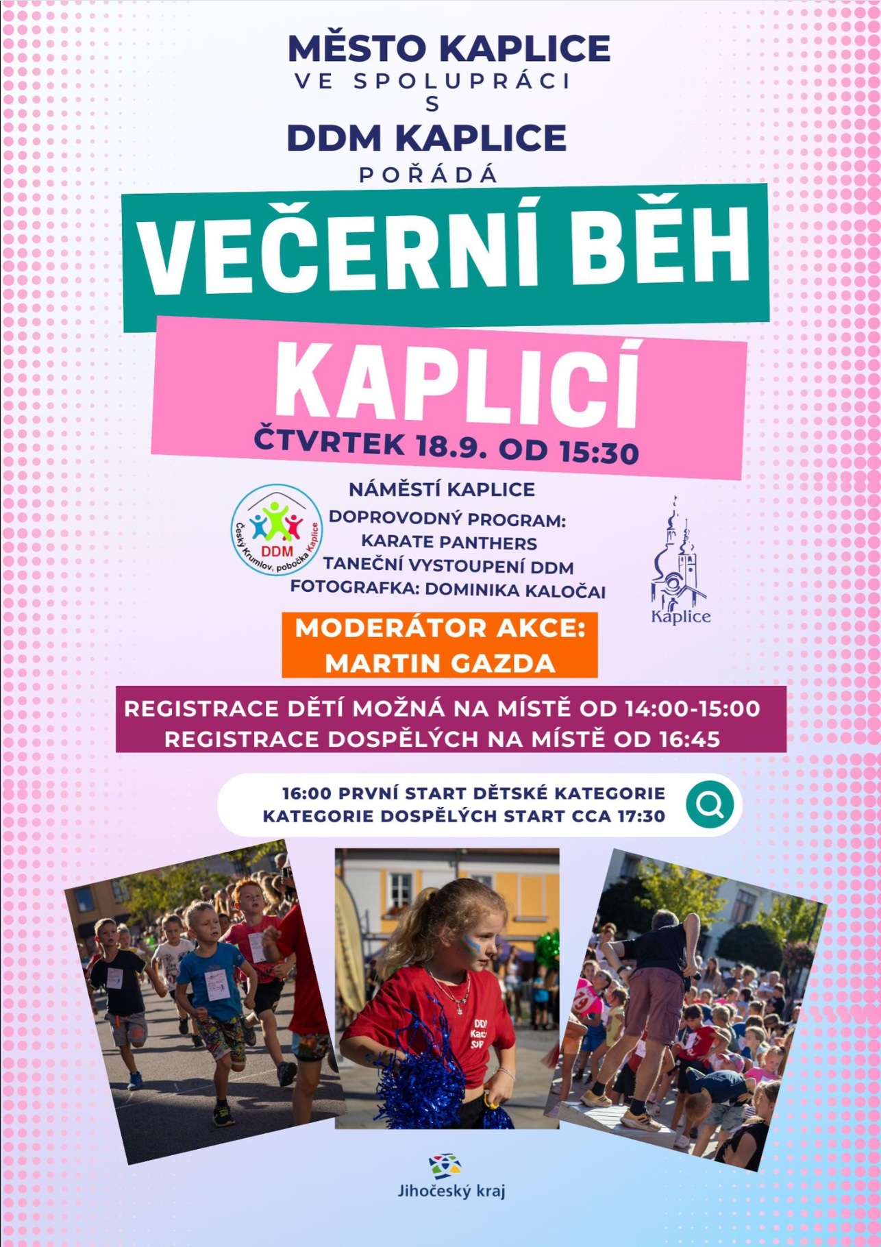 čtvrtek 18.9. Večerní běh Kaplicí, spousta dětských běhů a dospělí nakonec, cca 6 km, pozvánka v příloze.